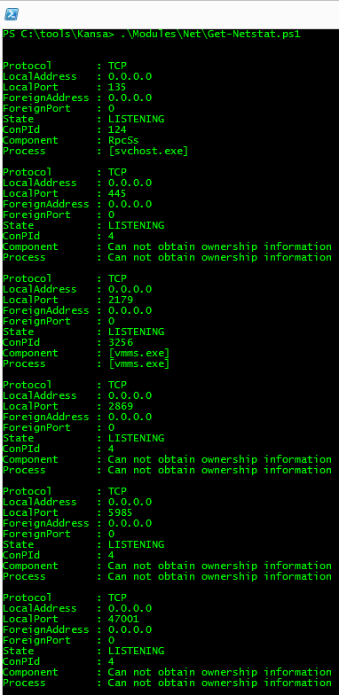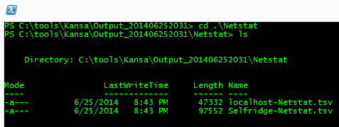 But why does Kansa.ps1 convert it to TSV? This is actually controlled by Get-Netstat.ps1 via another special comment directive that tells Kansa how to handle the data returned by the modules. In the case of Get-Netstat.ps1, this directive looks like this: