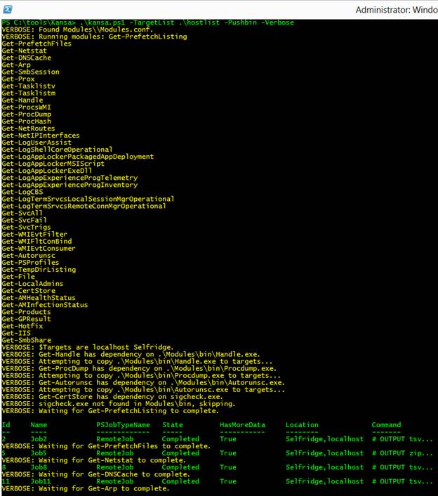 PS C:\tools\Kansa> .\kansa.ps1 -TargetList .\hostlist -Pushbin -Verbose