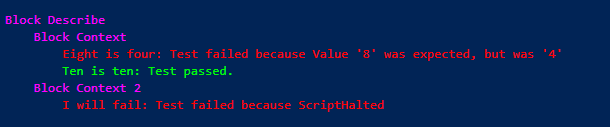 This concludes our review of Describe, Context and It. Hopefully you saw that a test runner is very simple at its core. Both Test-Case and Test-Block use very similar code. They execute input ScriptBlock and handle every possible exception.