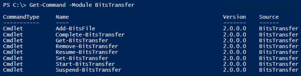 Introduced in Windows 7, the BitsTransfer PowerShell module contains several cmdlets for administering the BITS client: