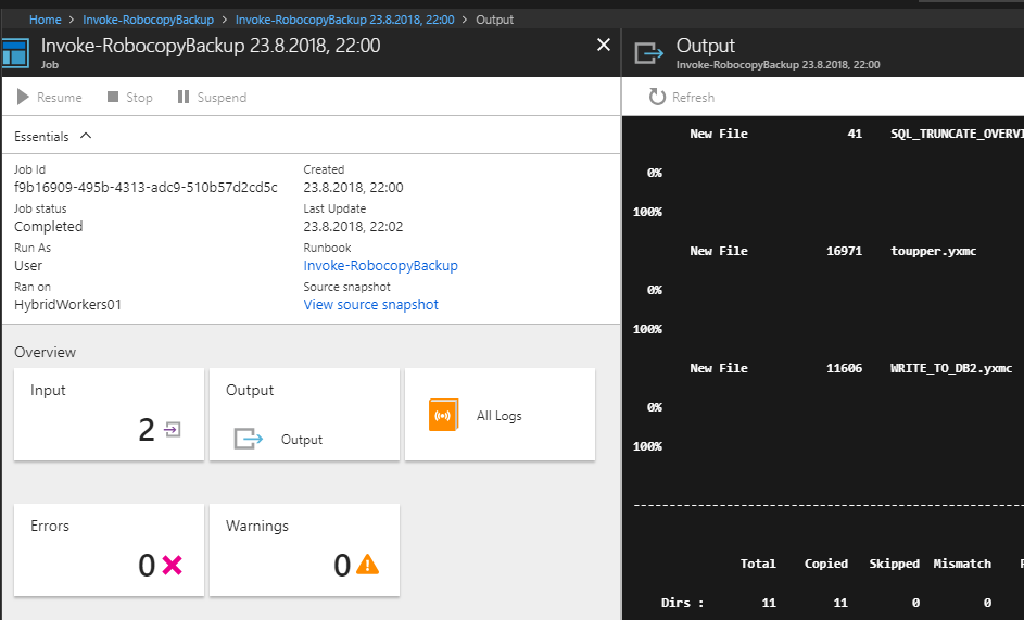 After starting a runbook job, everything looked like expected, except for the Output stream being unavailable (“No access”):